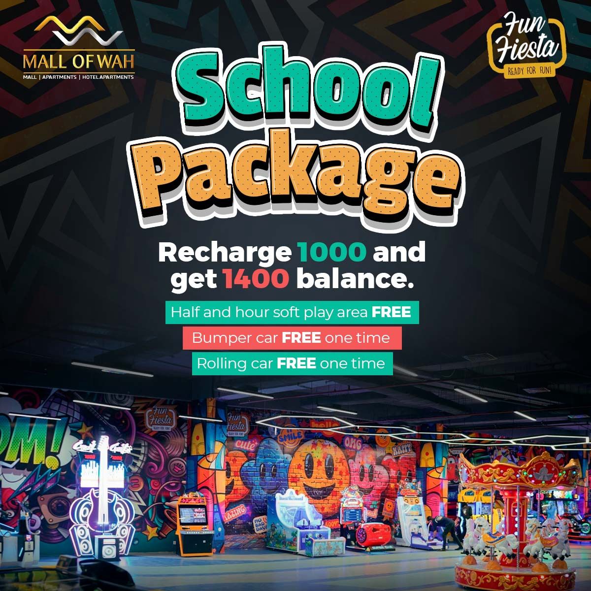 Located inside Mall of Wah, FunFiesta offers easy access, convenience, and a perfect play break while families enjoy shopping and dining.